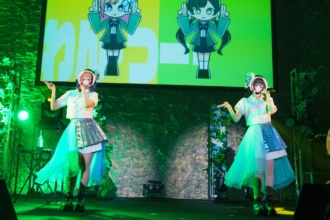 MCを挟んだあとは、「すごく思い入れのある曲」というKotohaの紹介で「愛に出会い恋は続く」を熱唱。細かく繊細なボーカルワークが求められる楽曲だが、HanonとKotohaはそれぞれステージの左右に分かれていながら、それでも完璧に息を合わせて歌いあげる。この凄まじいコンビネーションもハコニワリリィの魅力のひとつで、お互いへのたしかな信頼感が感じられた一曲だった。続けての楽曲は、TVアニメ『忍者と殺し屋のふたりぐらし』のエンディングテーマ「にんころダンス」。とことんキャッチーで明るい曲調とオリジナリティー溢れる振り付けで、ふたりの「陽」な「可愛さ」が大爆発。会場は大歓声に包まれた。
