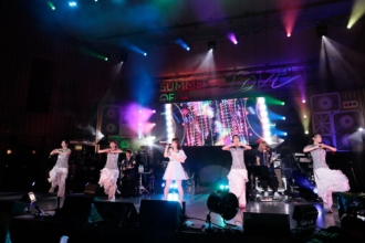 最初のMCで「今日は皆さんとウキウキなデートを楽しんでいきたいと思いますので、一緒に盛り上がっていきましょう!」と叫び、「波乗りキャリーオン」で、さらに大騒ぎ! ここでもキャノンで大量の水を噴射し、ファンもびしょびしょになりながらウェーブをして楽しんでいた。「Flag Ship」では、スクリーンの映像でクルージング気分を味わいながら、“サイコーを超えてこう”と歌っていく。「アイマイ♡シェイキーハート」は、サビで手を左右に振り、“(Wow)”と声を合わせて、一体感を高める。“そっぽ向いた”で、実際にそっぽを向く仕草もかわいらしかった。