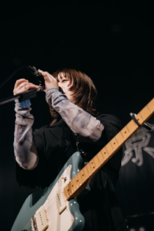 ますはオープニングアクトに抜擢された京都発のオルタナティブロックバンド、夢幻泡影が右近ステージに登場し、静寂に向かって一音一音ギターを放っていく。ゆっくりと合流していく重たいリズムと閃光とともに、結成からわずか1年でつかんだ千載一遇の15分間に、渾身の2曲「無重力」「繰り返す」を突き立てる。2024年の『京都藝劇』にも足を運び、「私もこの舞台に立てたらいいなとずっと夢見てきた」と語った燐(Gt.Vo)。まばゆき新星がかなえた夢の続きが楽しみでならない。