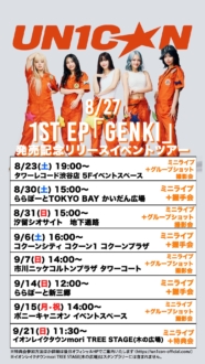 さらに、EP発売に伴い都内近郊で1st EP『GENKI』リリースイベントが開催中だ。残りは、9月14日埼玉:ららぽーと新三郷、9月15日東京:ポニーキャニオン イベントスペース、9月21日埼玉:イオンレイクタウンmori TREE STAGE(木の広場)の3箇所となっており、ミニライブに加え、会場毎にグループショット撮影会と握手会を実施する。