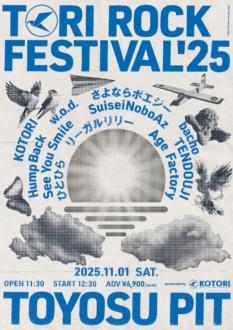 KOTORIが11月1日に東京・豊洲PITにて開催する、バンド主催フェス『TORI ROCK FESTIVAL 2025』の全出演アーティストが発表された。