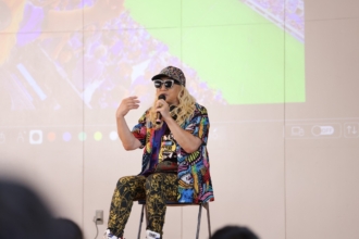 授業には、和田中学校の全校生徒が参加。各社による仕事紹介、トークセッション、DJ KOOによる講演の3本立てで授業が構成された。