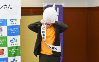 林市長は、「岐阜県に山県市があるということを、ぜひユーチンさんの力でメッセージとして市外、県外、世界に発信していただきたいと思います。今はSNSの時代ですので、私達にはできないような発信の仕方で笑いとともに魅力を発信していただきたいと思います。」と語り、今後の活躍に期待を寄せていた。