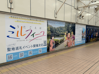 描き下ろしコラボイラストを使用した【横10m×縦2.3m】の特大ラッピングを掲出中!