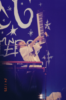 ツアーで磨かれた一体感とこの日ならではの即興性を兼ね備えたバンドの演奏が、観客を心地よく高揚させる。「クロスロオオオード」は音源にはないセッションパートがとにかく楽しい。牧、プリティ、柳沢のみならず、MIDIに持ち替えた井上までもが出てきて、観客と一緒にステップを踏むなど、目でも楽しめるにぎやかさだった。とても自由な、バニラズのライブらしい光景だ。「平成ペイン」はプリティが客席へ下り、通路を歩きながらファンと直に交流。そして「青いの。」では、観客の手拍子と歌声が明るく響いた。