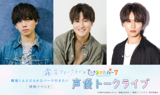 また5月10日には霧尾賢役の梶原岳人、満田充役の広瀬裕也、桃瀬隼斗役の小笠原仁が登壇する特別イベントが開催される。トークコーナーやゲームコーナーに加えて、イベント来場者へのプレゼントコ―ナーも予定しているとのこと。イベントは1日2回実施され、ひらかたパークの入園券を持っていれば誰でも観覧できる。イベントの開催をどうぞお楽しみに。